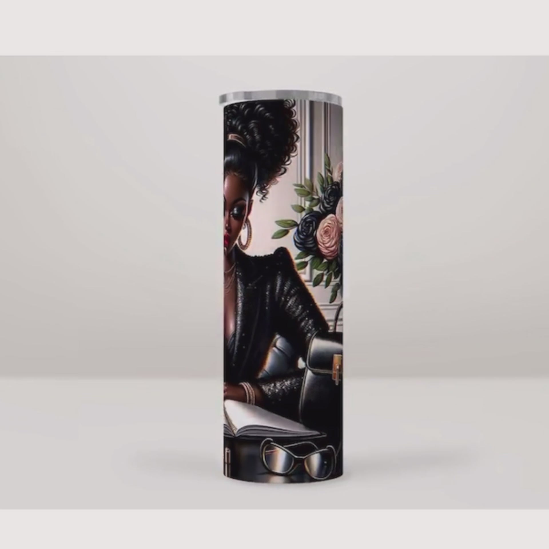 Boss Girl Black Woman Tumbler 3D 20oz Stainless Steel double wall insulated tumbler with lid and stainless steel straw. Keeps drinks cold for 12 hours and hot for 8 hours.