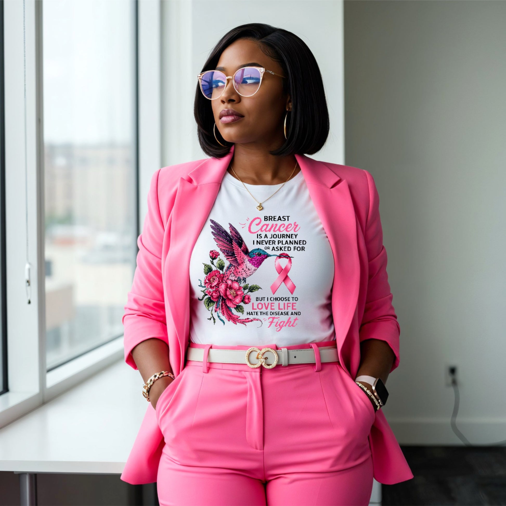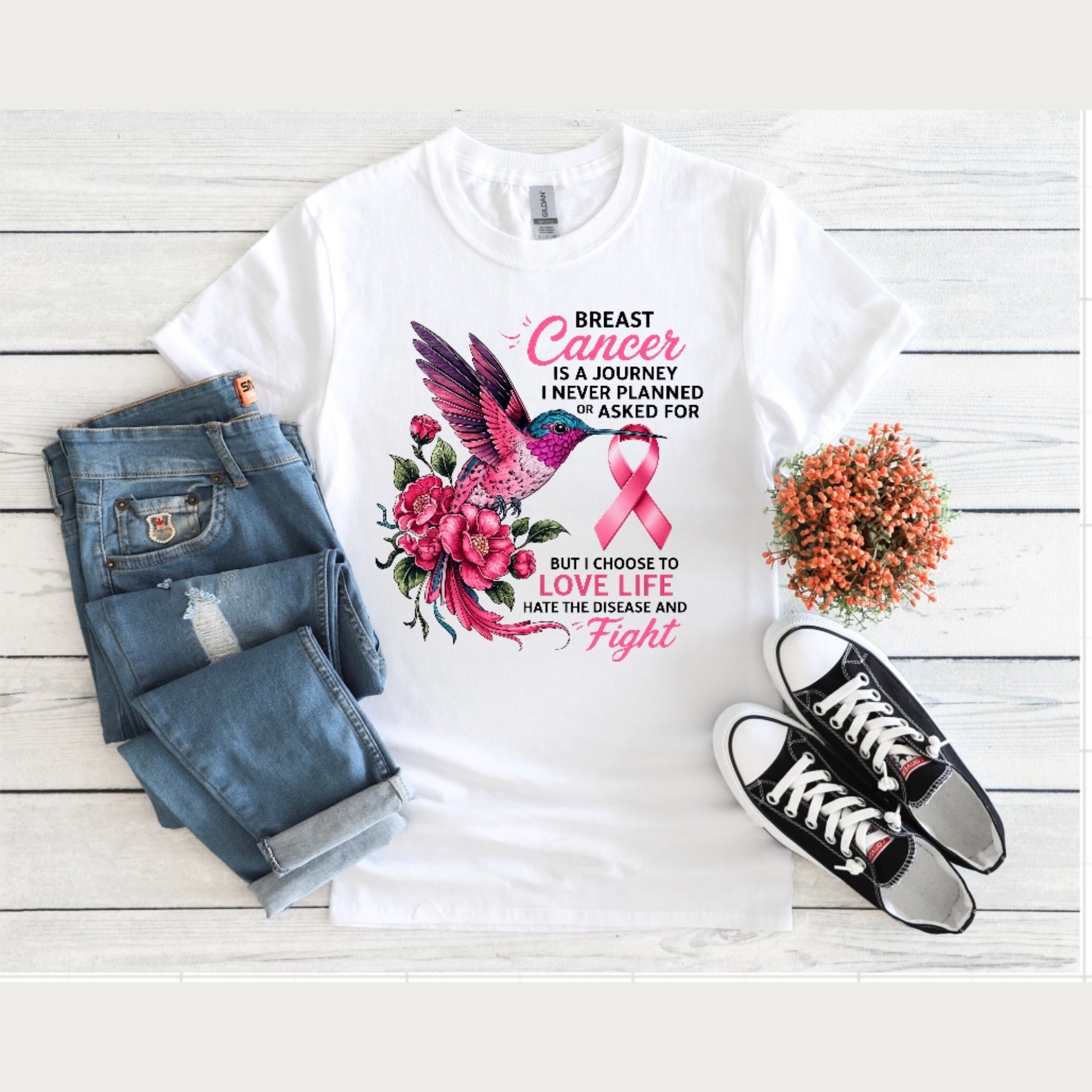 Breast Cancer Is A Journey Tee. Unisex soft style 100% cotton white Tee, if you prefer a more fitted shirt, sizing down a size is recommended