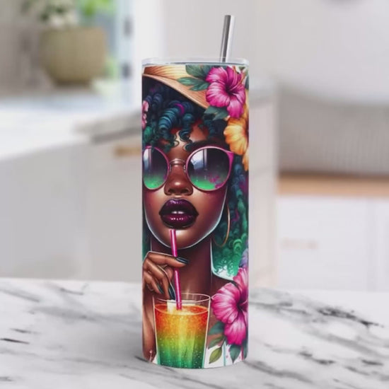 Summer Vibes 3D 20oz Stainless Steel double wall insulated tumbler with lid and stainless steel straw. Keeps drinks cold for 12 hours and hot for 8 hours.