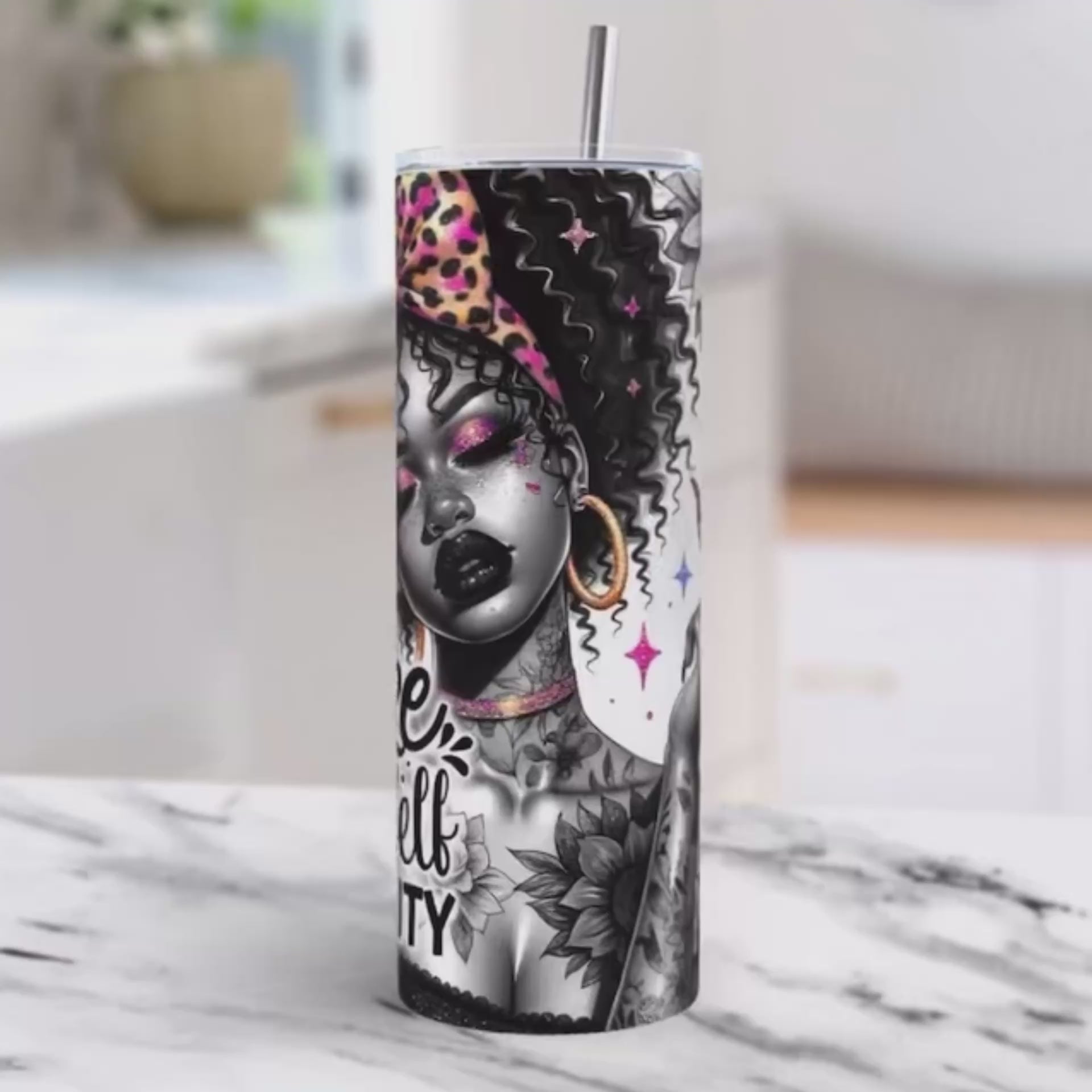 Make Yourself A Priority 3D 20oz Stainless Steel double wall insulated tumbler with lid and stainless steel straw. Keeps drinks cold for 12 hours and hot for 8 hours.